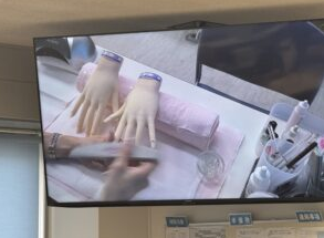 モニターを見ながら一緒に行う学生や先生を呼んで確認して頂く学生と