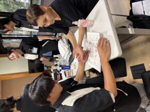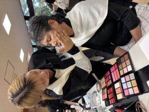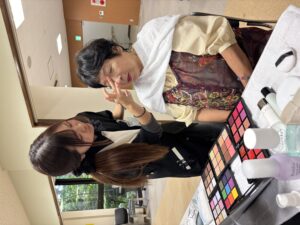 学生たちは、施設利用者の皆さまにメイクやハンドマッサージを体験していただき、