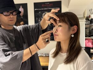 今回のデモンストレーションは「シリコンの整形メイク」でした。ナチュラルに、本物の