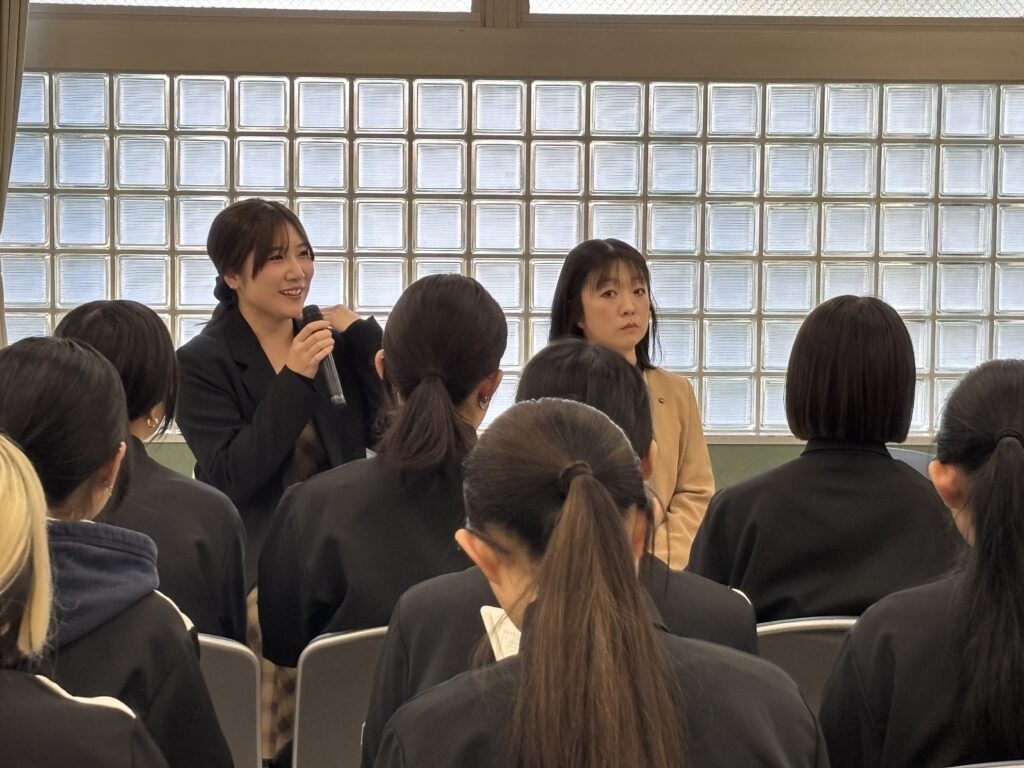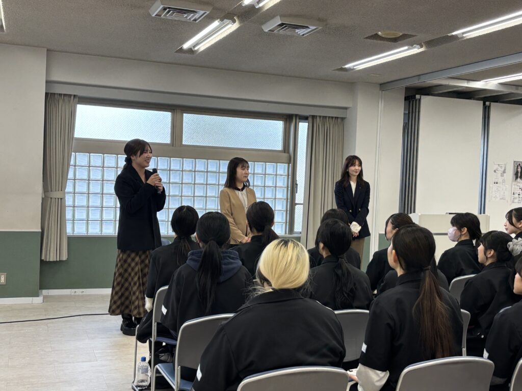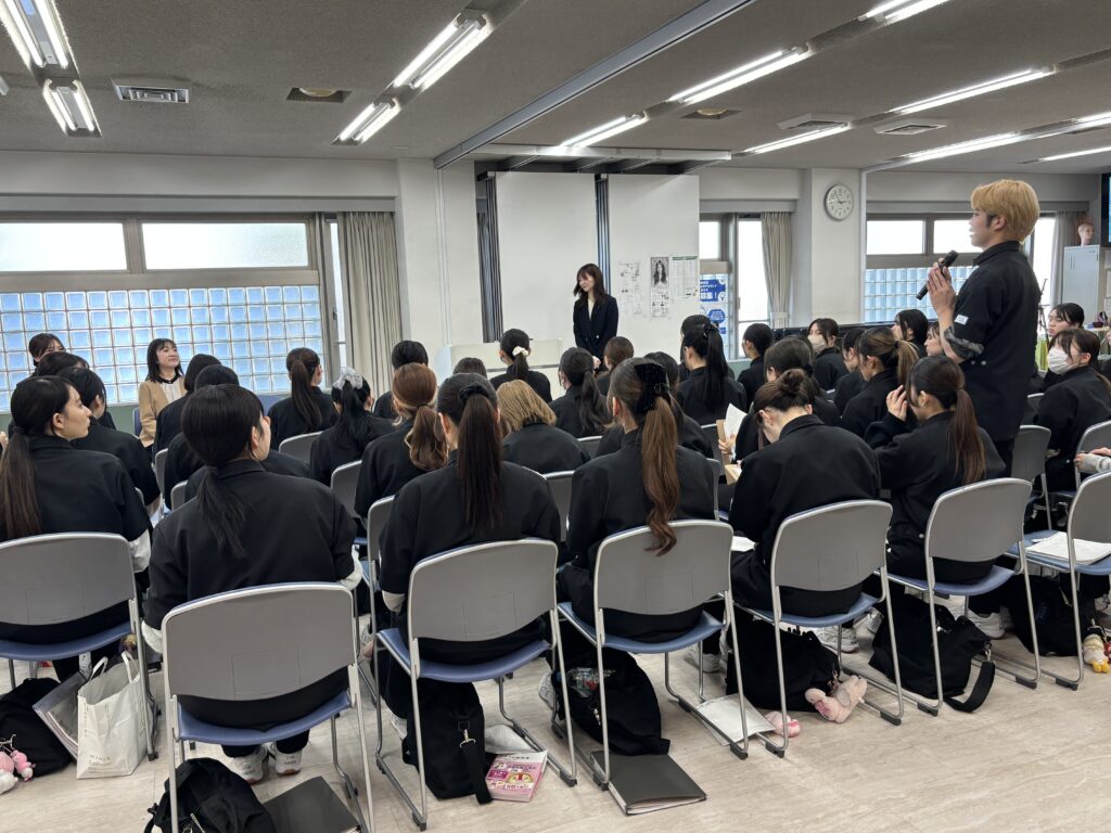 講話では、実習に臨む際の心構えや注意事項、店頭での立ち居振る舞いなど、現場で求められるプロとしての姿勢について詳しくお話しいただきました。