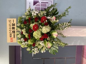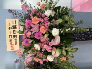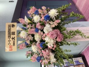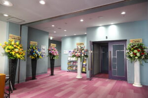お花を沢山いただきました。入学式にふさわしい色とりどりの花々に包まれたフロアーです。