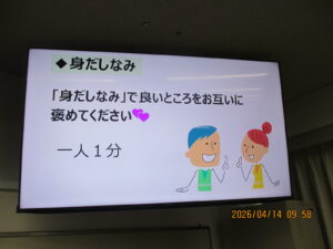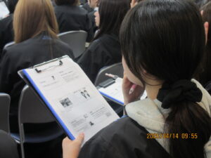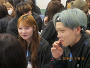 会話だけじゃなく、立ち方・座り方など昨日の学習を今日につなげて、学生はけっこうアクティブ(笑)