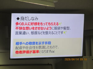 今日の午前は、「学生のうちから身につけておきたいマナー」を学びました!