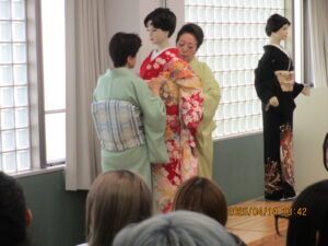今回は「名古屋帯びの結び方」「振袖」「留袖」のデモンストレーション。