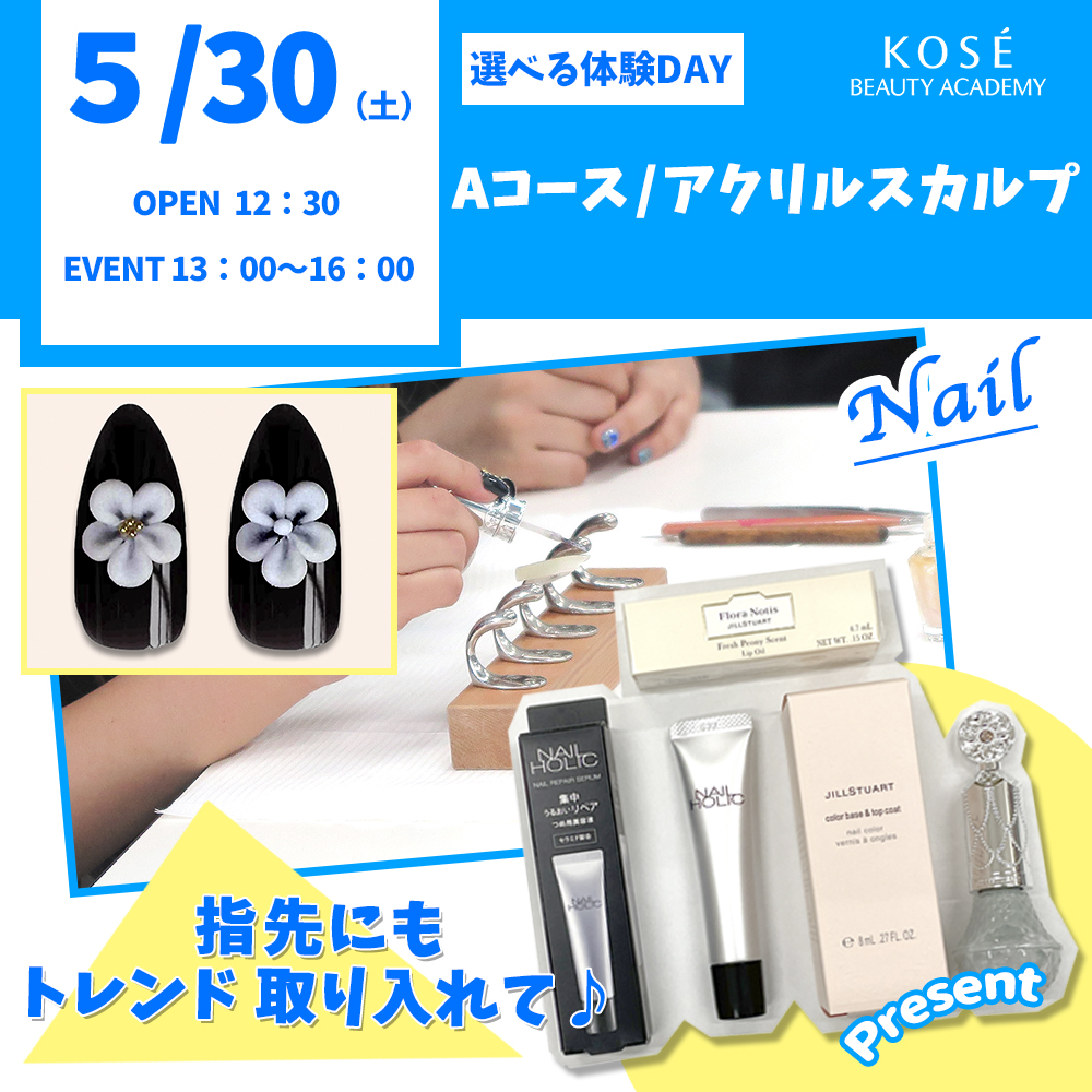 Aコースは、ネイルアートのアートの定番3Dアートフラワー♪